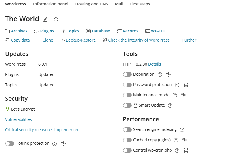 Un aspecte fonamental a tenir en compte és que, per evitar problemes de contingut duplicat, les còpies clonades tenen desactivada la indexació en cercadors per defecte. Si vols que la nova còpia sigui trobada per cercador, hauràs d’anar a la secció de WordPress, entrar a Configuració i desmarcar la casella que impedeix la indexació.