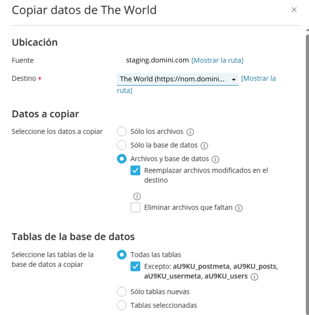 Compte amb les dades: Si el lloc de destí ja té contingut, s’esborrarà tot el que hi hagi per posar-hi la còpia. Assegura’t que el destí estigui buit o no t’importi perdre el que hi ha.