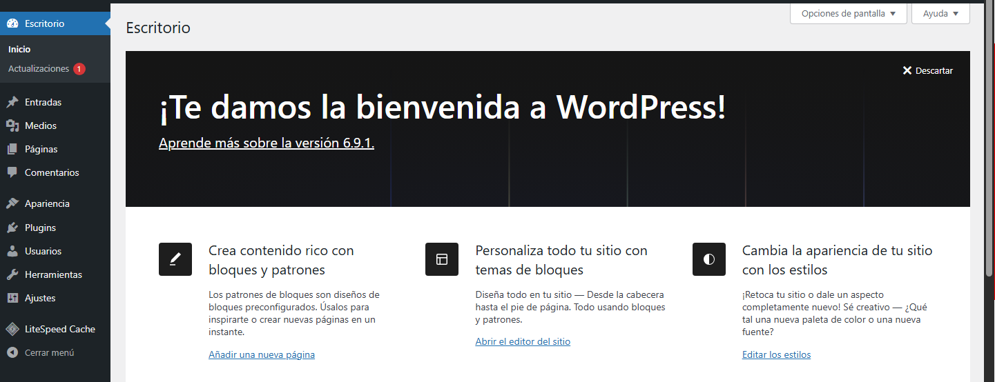 Quan la barra de progrés acabi, ja tindràs el teu nou web llista i a punt per fer-lo servir.