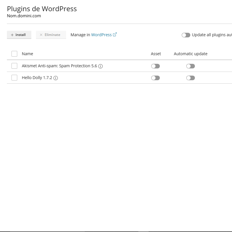 El teu lloc web seguirà actiu i intacte per als visirtants. Simplement, ja no podràs gestionar-lo des de WP Toolkit, perdent l’accés a les seves funcuons ràpides d’actualizació i seguretat.
